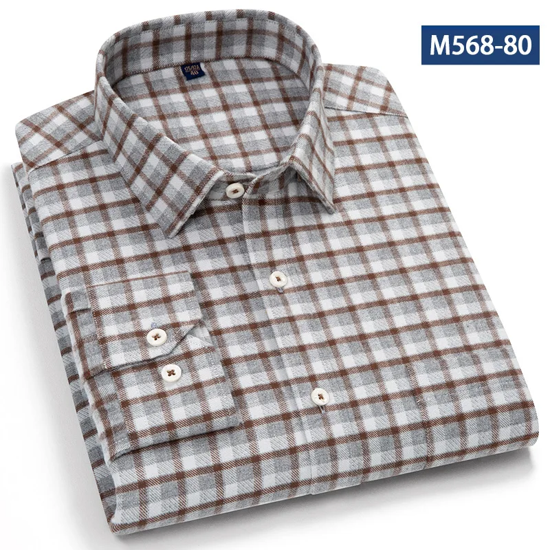 Autumn Spring New Long-Sleeved Business Casual Shirt for Young Men Quick Dry Sustainable Pure Cotton Breathable Plaid Striped