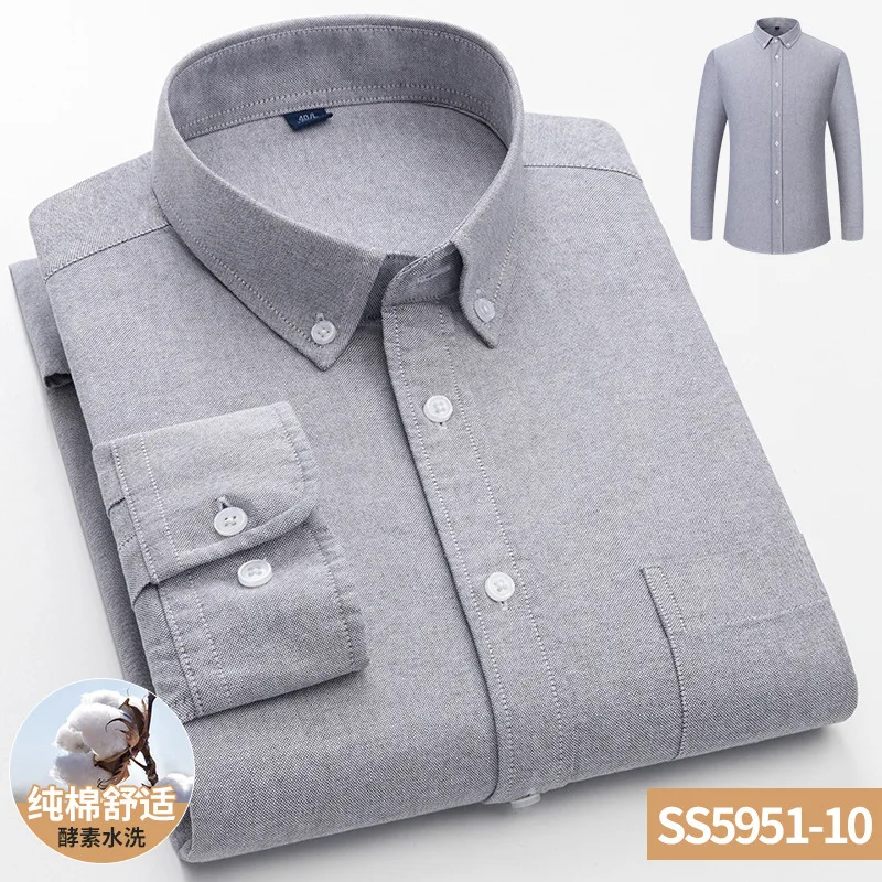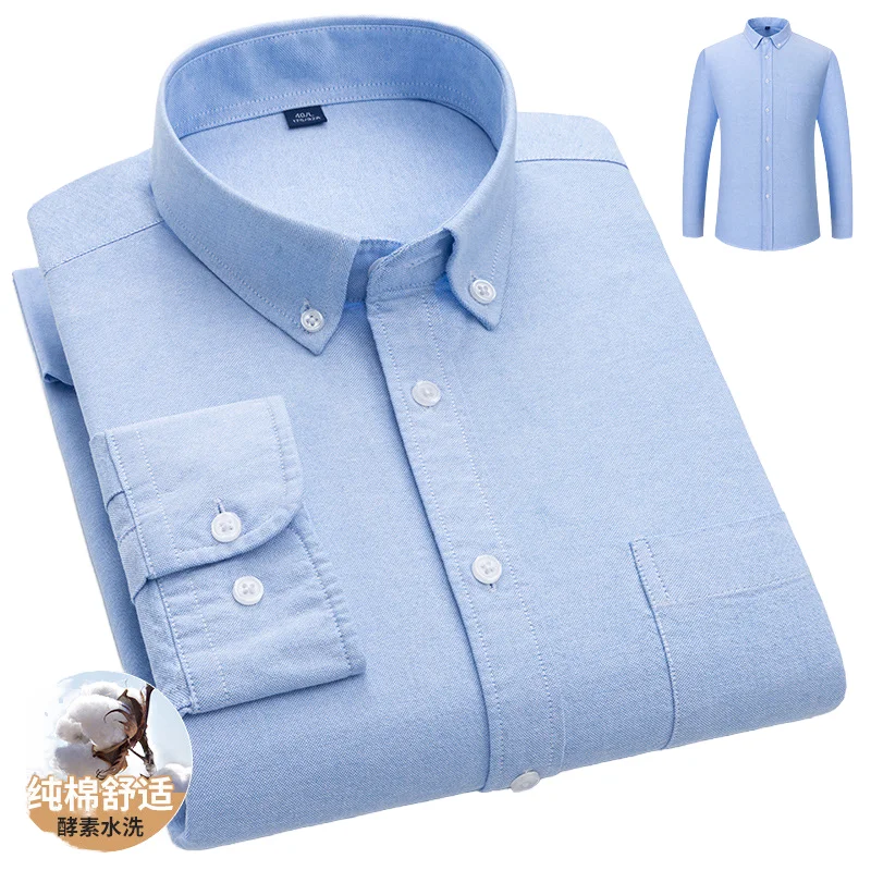New Spring Autumn Collection Men's Long Sleeve Casual Shirt 100% Cotton Oxford Woven Square Collar Twill Fabric Anti-Wrinkle