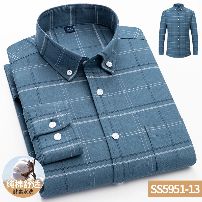 New Spring Autumn Collection Men's Long Sleeve Casual Shirt 100% Cotton Oxford Woven Square Collar Twill Fabric Anti-Wrinkle