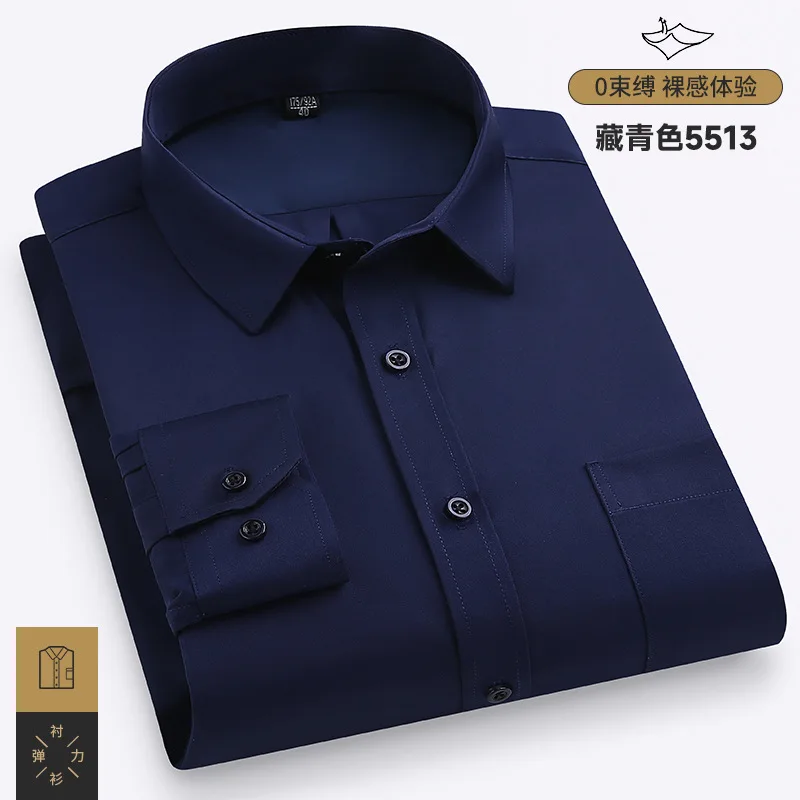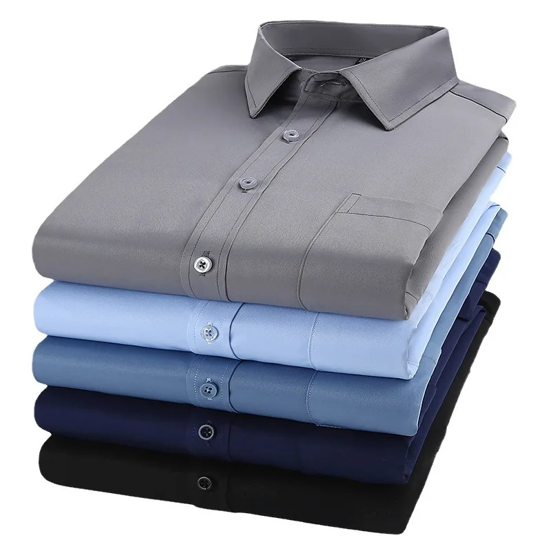 High Quality Men's Casual Long Sleeve Shirt Large Size Quick Dry Twill Fabric Breathable Ice Silk for Spring