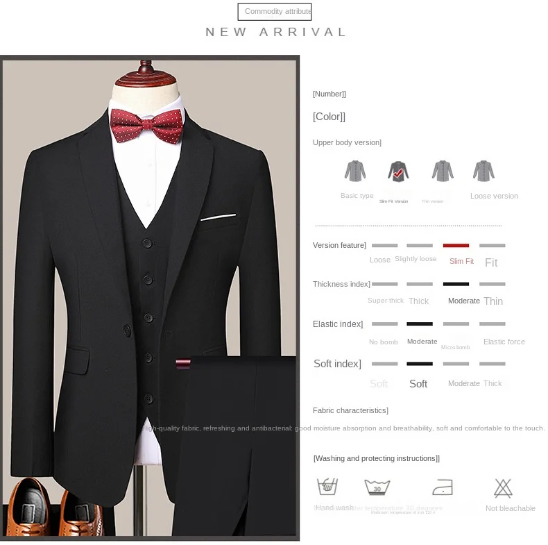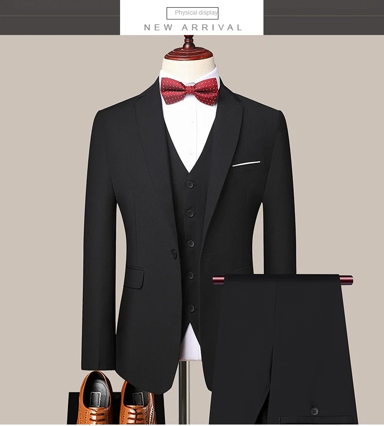 Men's Customized 3-Piece Groom Wedding Tailcoat Business Suits Fashion Formal Party Tuxedo Set XL Size Breathable Mandarin