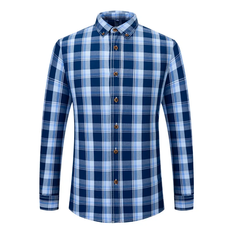 New Spring Collection Men's Striped Long Sleeve Casual Shirt 100% Cotton Poplin Anti-Wrinkle Young Style Plaid Design