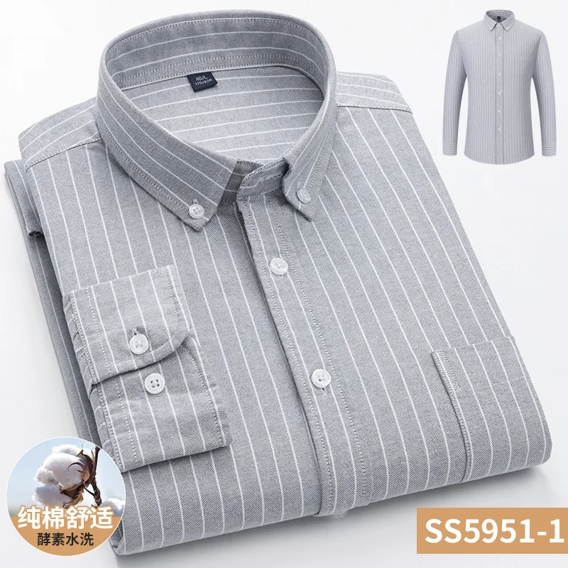 New Spring Autumn Collection Men's Long Sleeve Casual Shirt 100% Cotton Oxford Woven Square Collar Twill Fabric Anti-Wrinkle