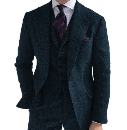 Custom Men's Wedding Suit with Three-Piece Gun Lapel Collar Single Breasted Closure Plus Size Explosive Design