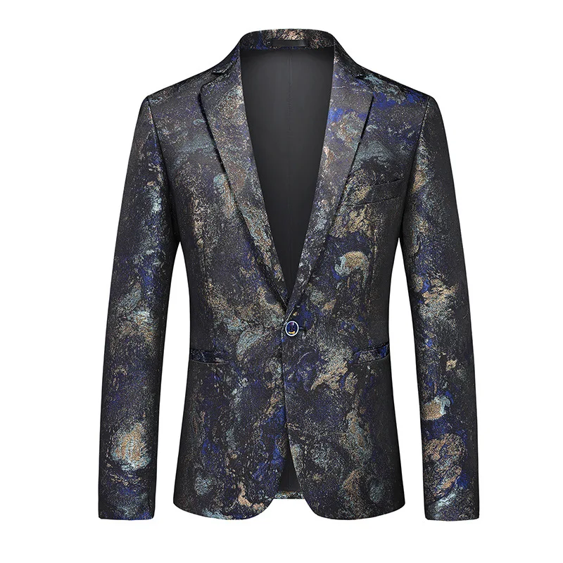 Men's Fashion Single Breasted Suit Spring and Autumn Casual Style with V-Neck Plus Size Single Button Closure