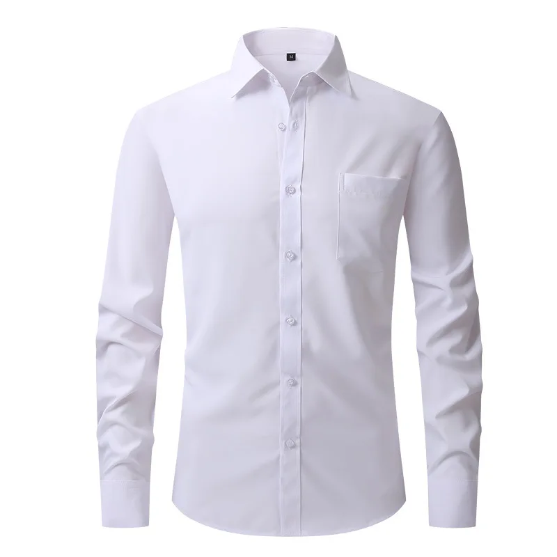 American Size Four-Sided Elastic Anti-Wrinkle Dress Shirt for Men Business Casual Professional Style Twill Fabric for Autumn