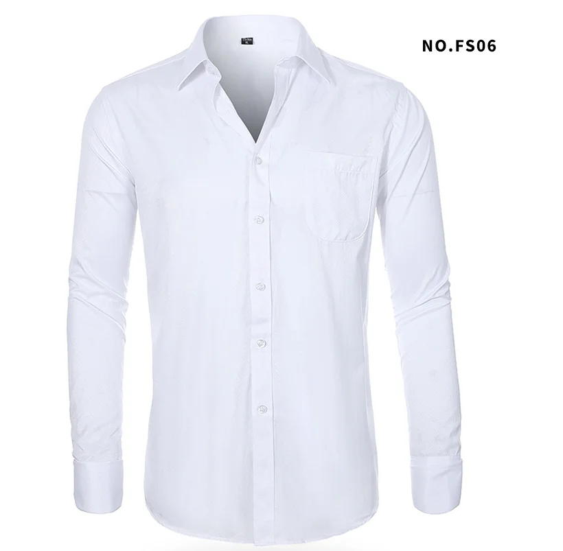 Casual Business Men's Long-Sleeved Slim Anti-Wrinkle Twill Fabric Shirt with French Cuff Plus Size for Spring/Summer