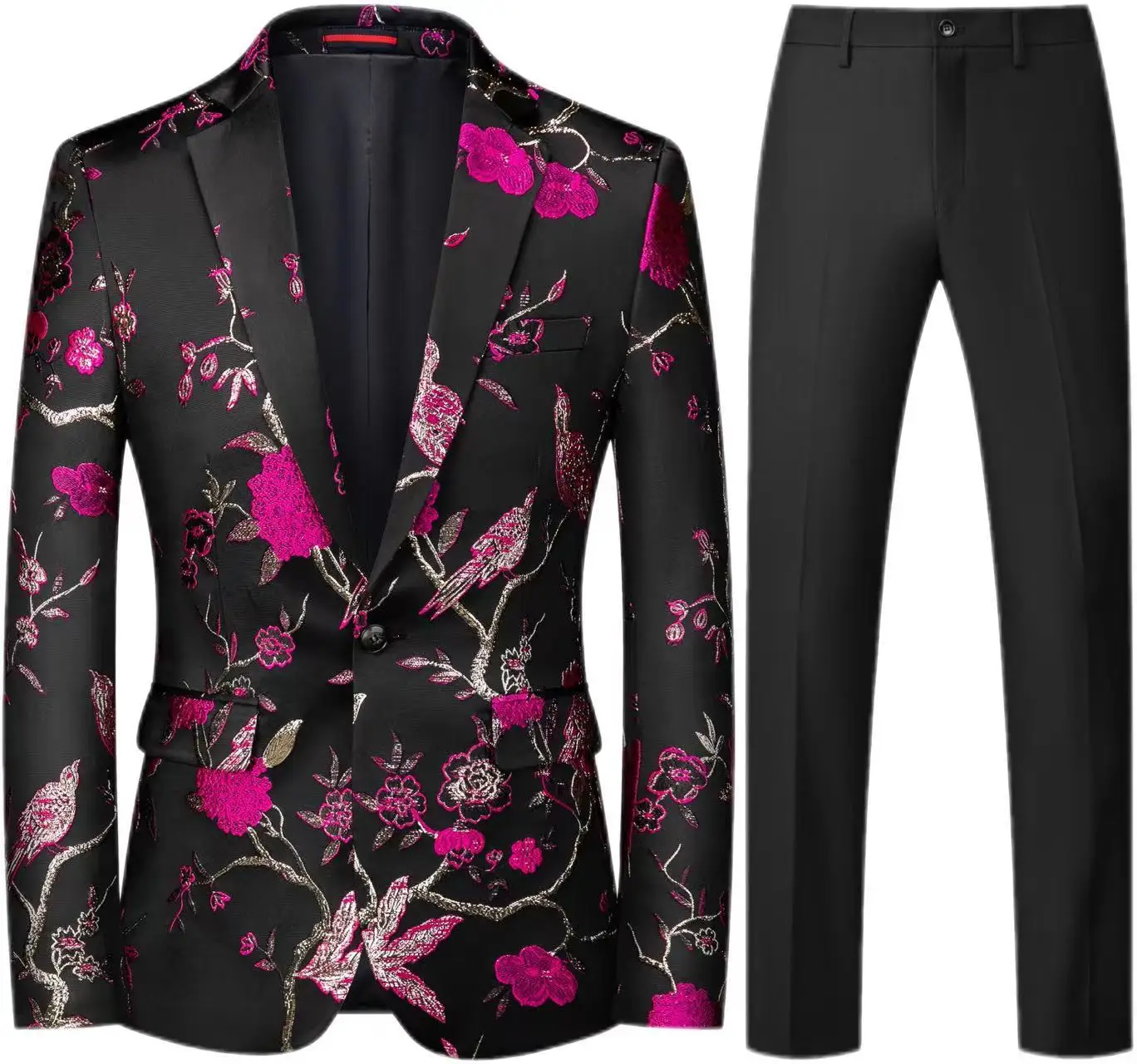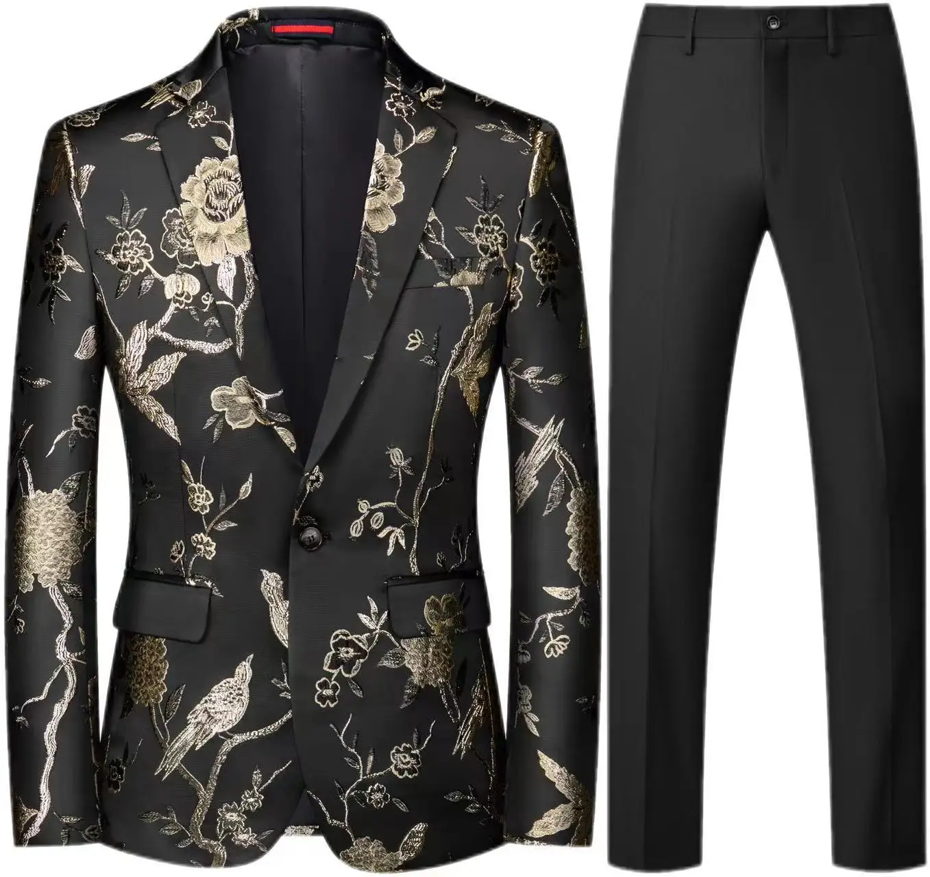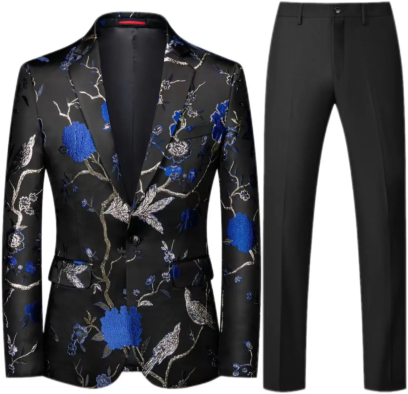 Men's Jacquard Fabric Two-Piece Business Casual Suit Waterproof Breathable Fashionable Color Plus Size Wedding Office Stage