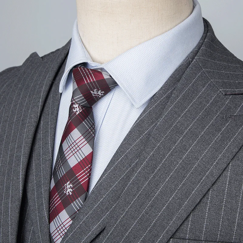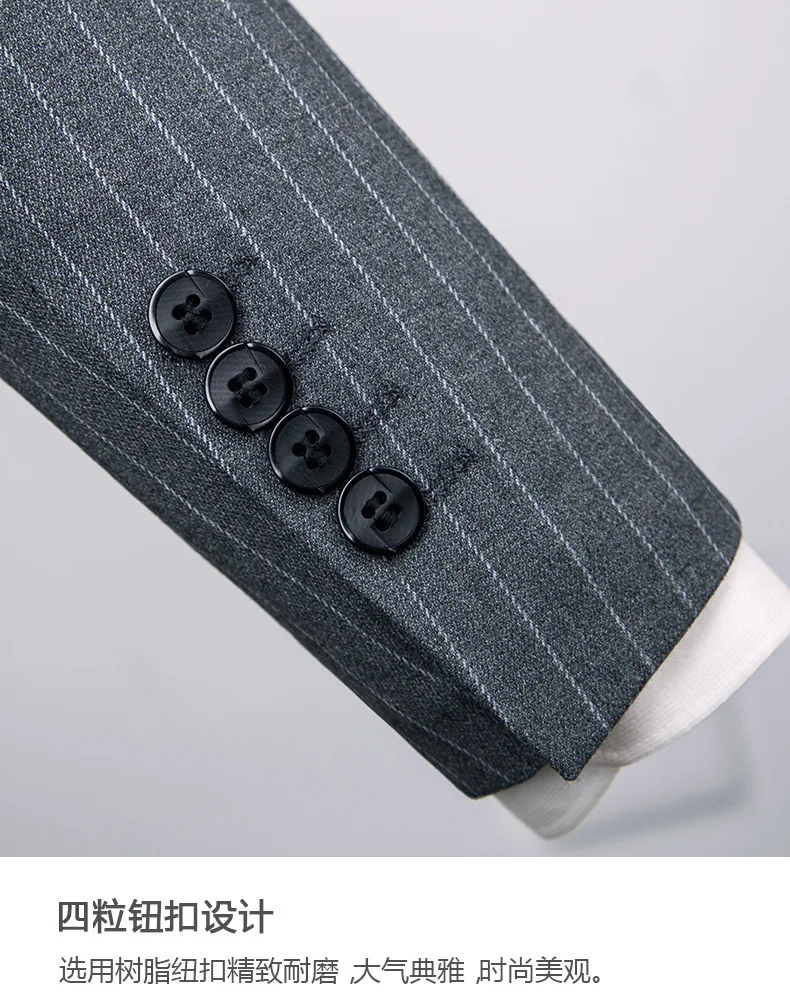 Tailored Men's Double Slit Groomsman Dress Suit with Grey Striped V-neck Collar Single Breasted Plus Size British Style