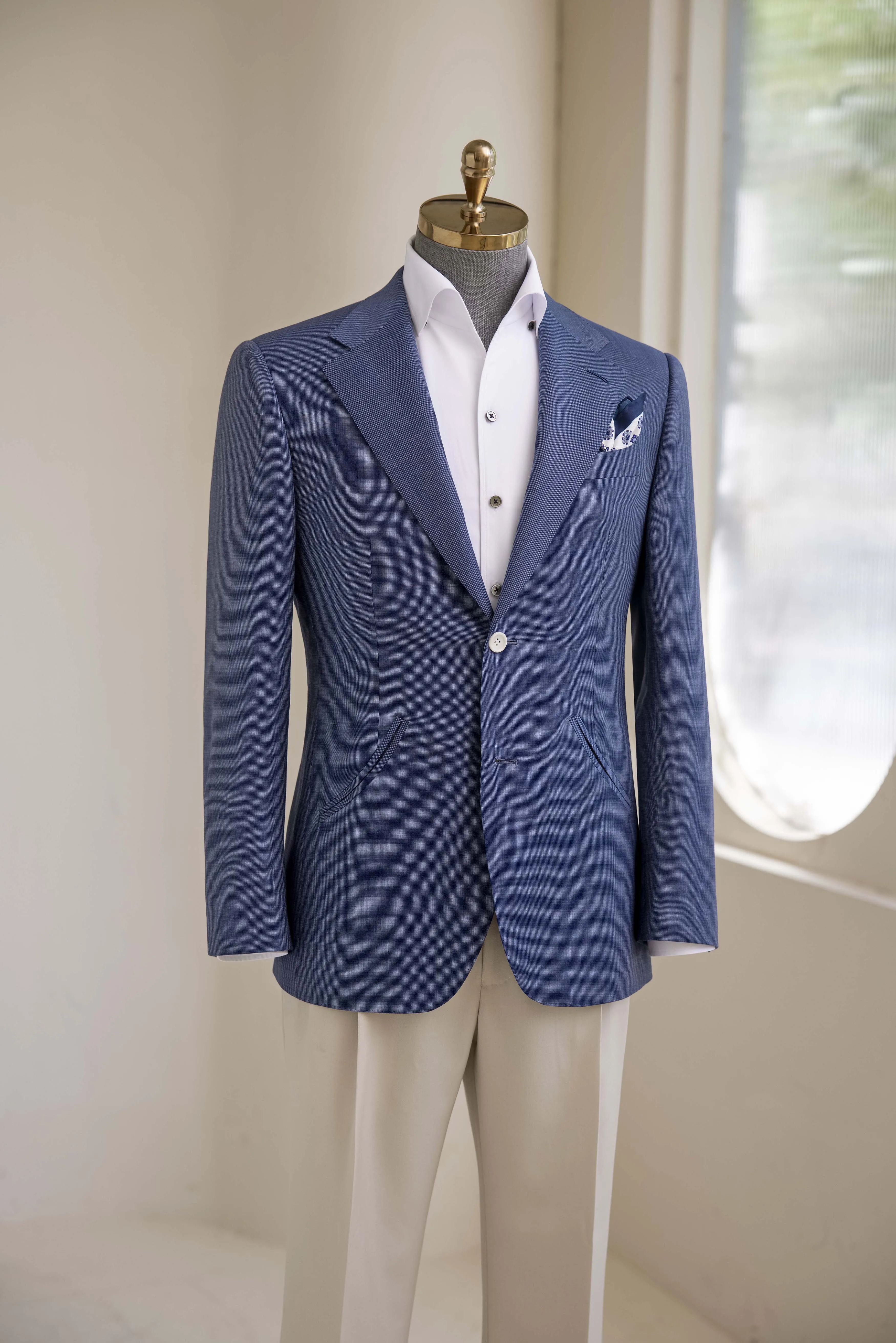 Haute Couture Men's Blue Single Breasted Wedding Suit High Quality Wool Fabric V-Neck Collar Plus Size Bespoke Blazers