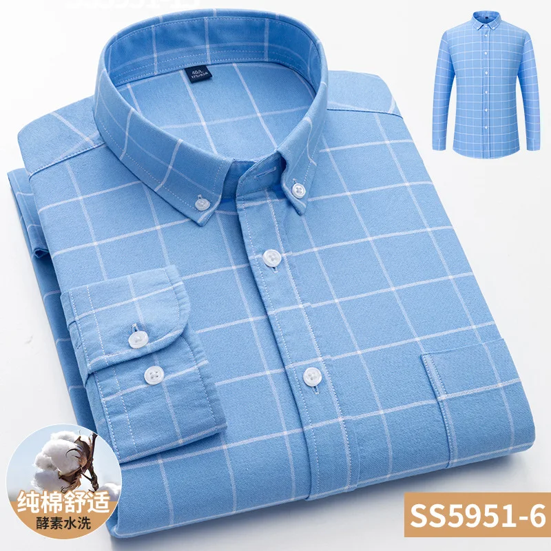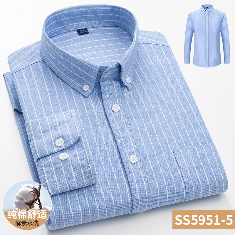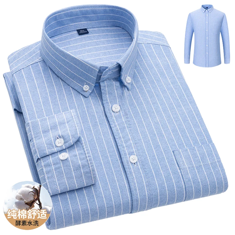 New Spring and Autumn Men's Long Sleeve Casual Shirt 100% Cotton Oxford Woven with Square Collar and Twill Fabric Anti-Wrinkle