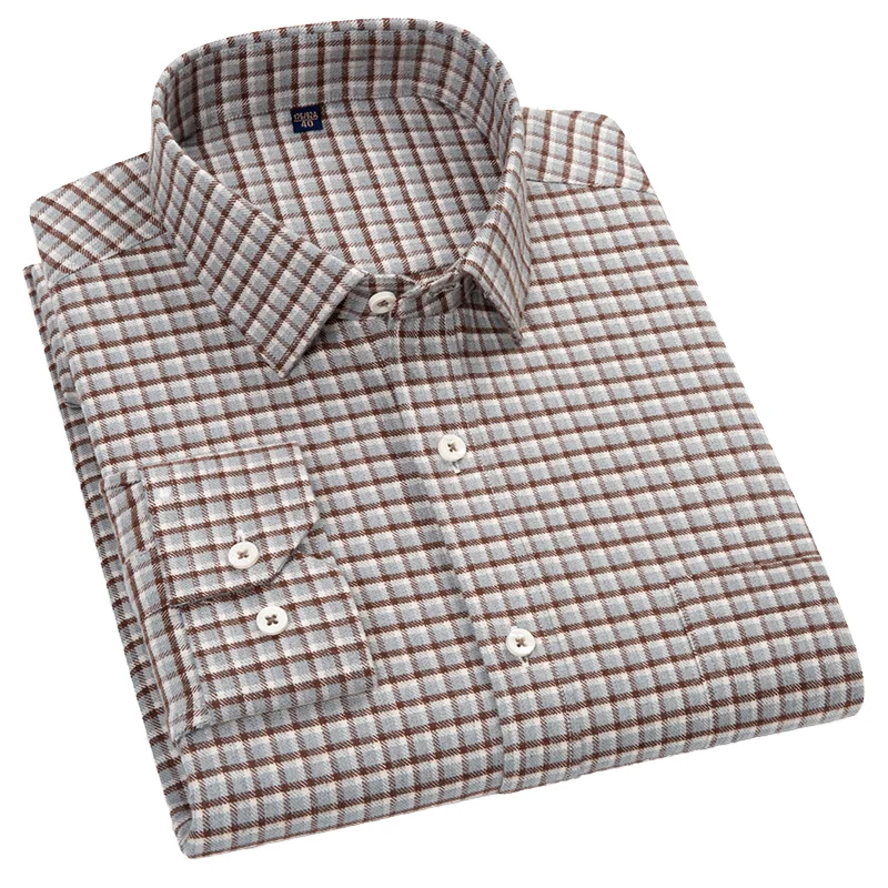 Business Casual Long-Sleeved Shirt for Men New Spring Autumn Plaid Striped Twill Quick Dry Breathable Sustainable 100% Cotton"