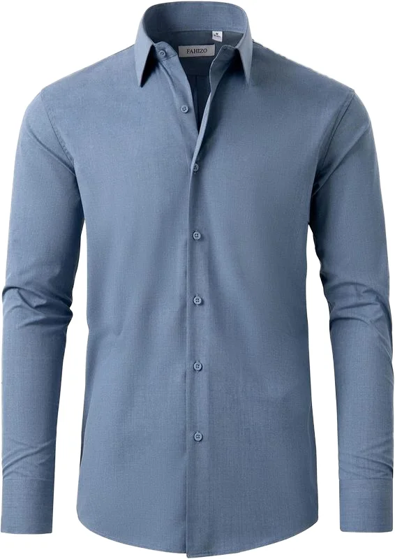Customized Men's Casual Slim Long Sleeve Shirt Solid Color Business Wear Anti-Wrinkle Twill Fabric for Autumn