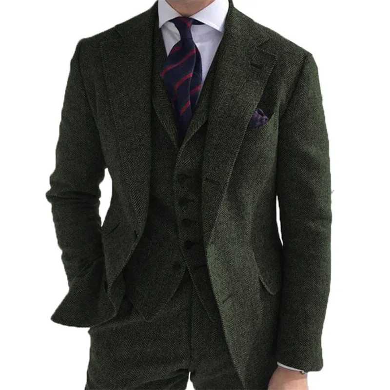 Custom Men's Wedding Three-Piece Blazer with Gun Lapel Collar Single Breasted Closure Plus Size Explosive Design