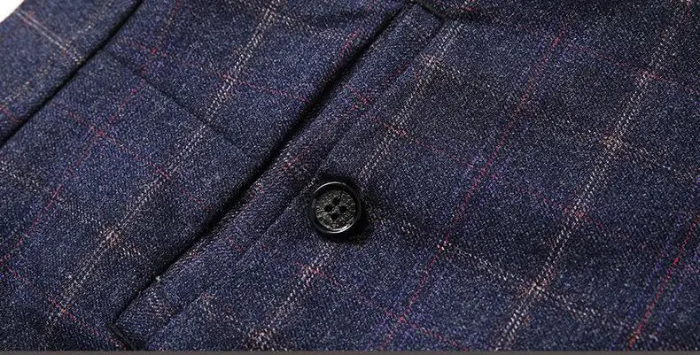 Navy Blue Plaid Three-Piece Men's High Quality Suit Stylish Business Suits with Zipper Fly Plus Size for Weddings and Hosting