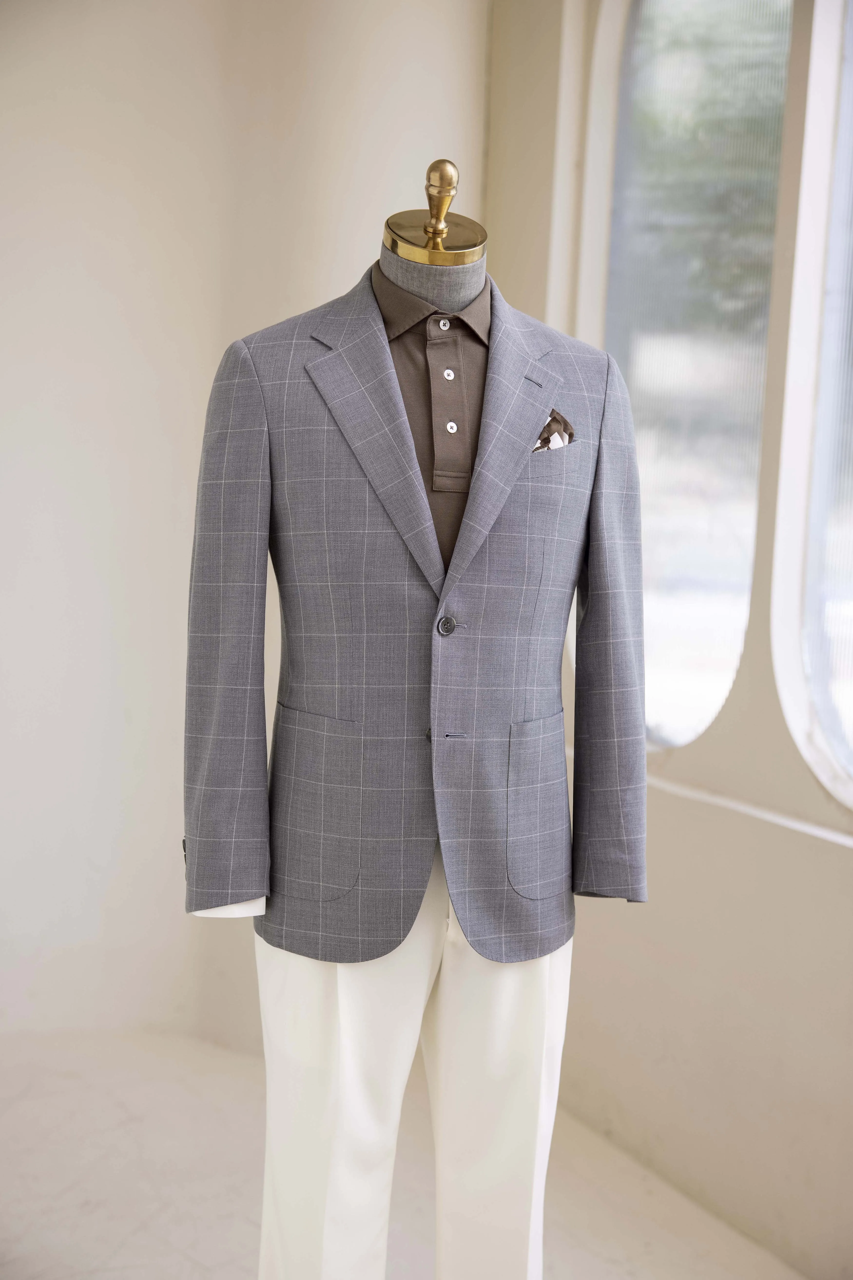 Haute Couture Men's Wedding Single Breasted V-Neck Collar Plus Size Suit High Quality Wool Fabric Bespoke Square Lattice Blazers