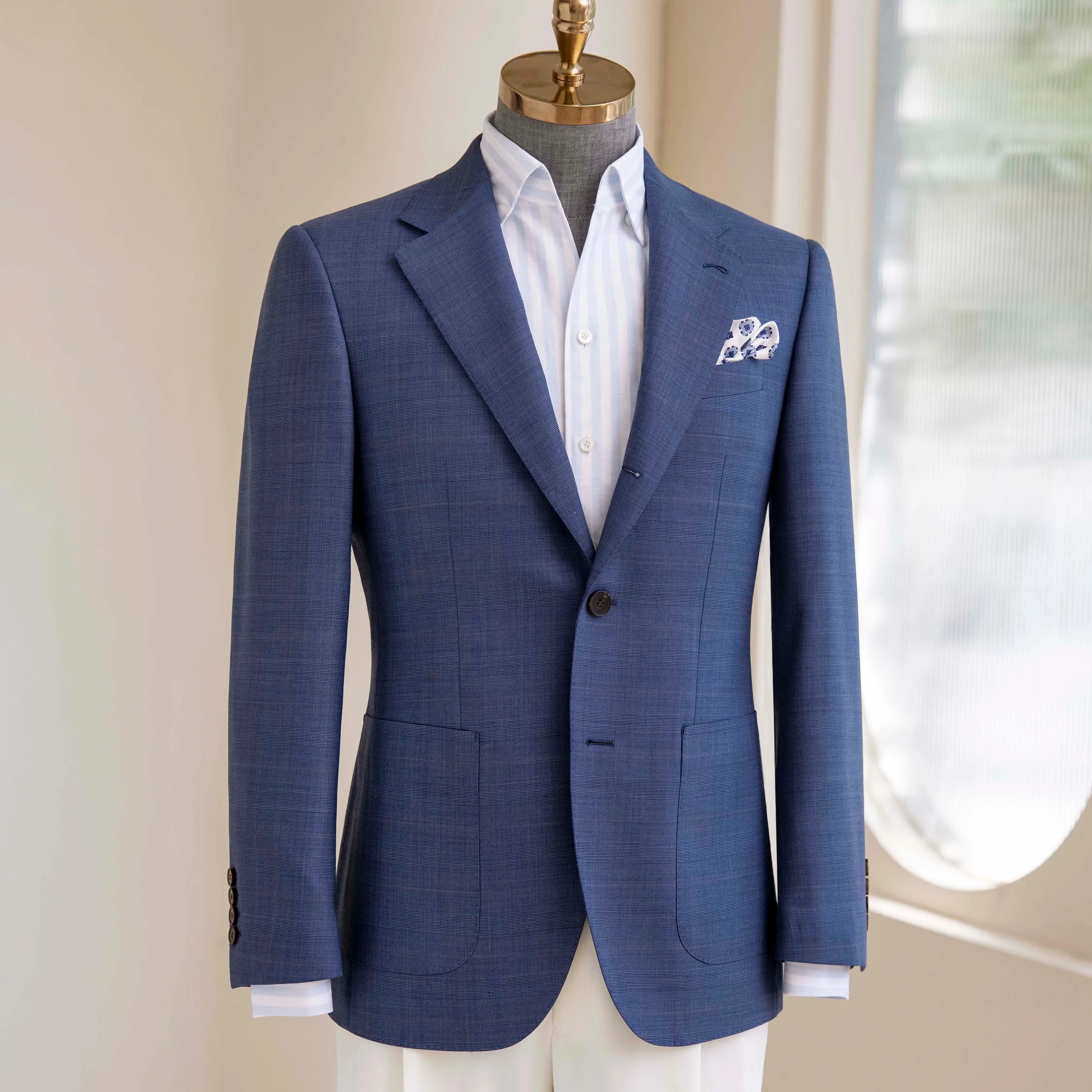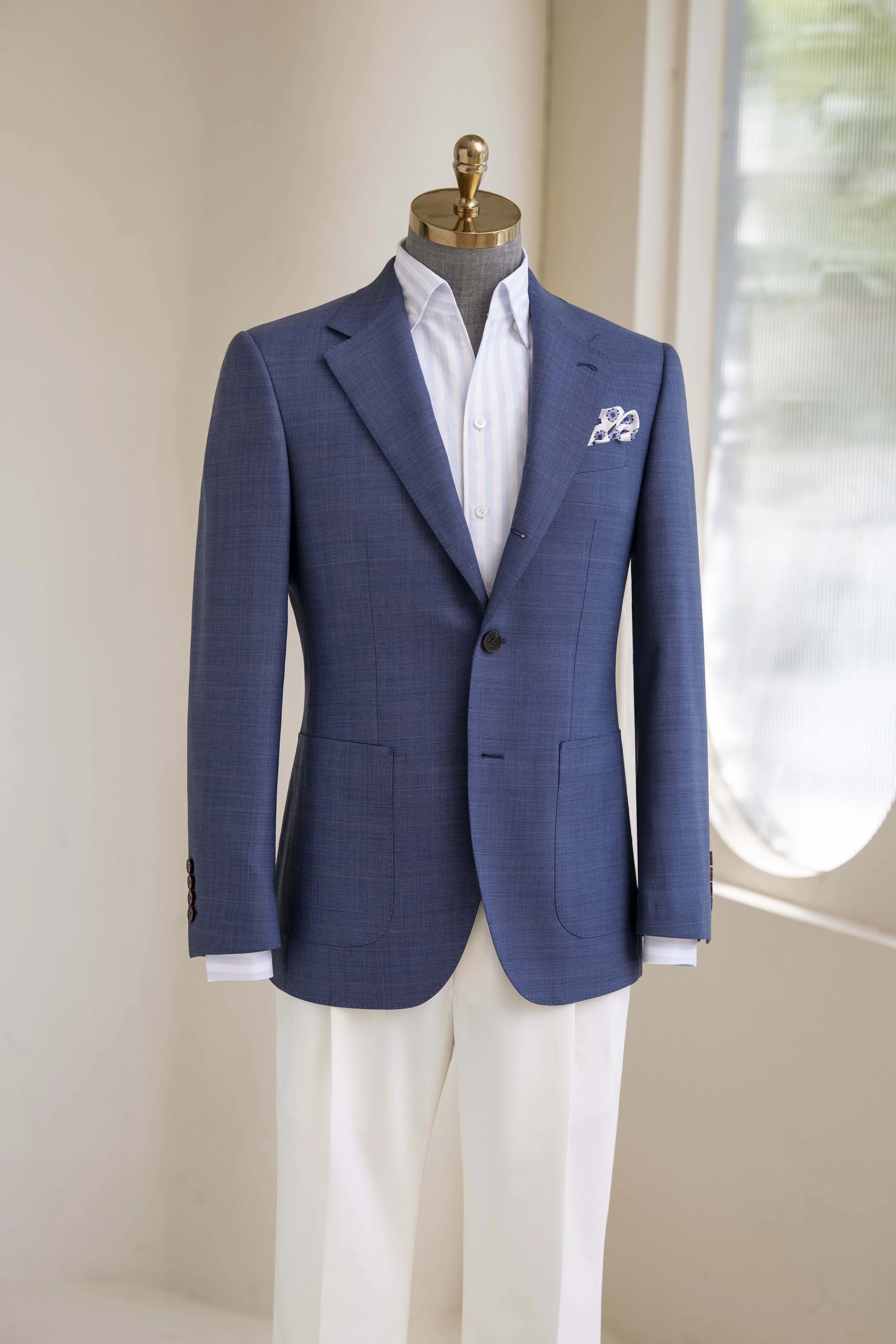 High Quality Blue Men's Bespoke Wedding Single-Breasted Wool Fabric Suit Haute Couture Design V-Neck Collar Plus Size Blazers