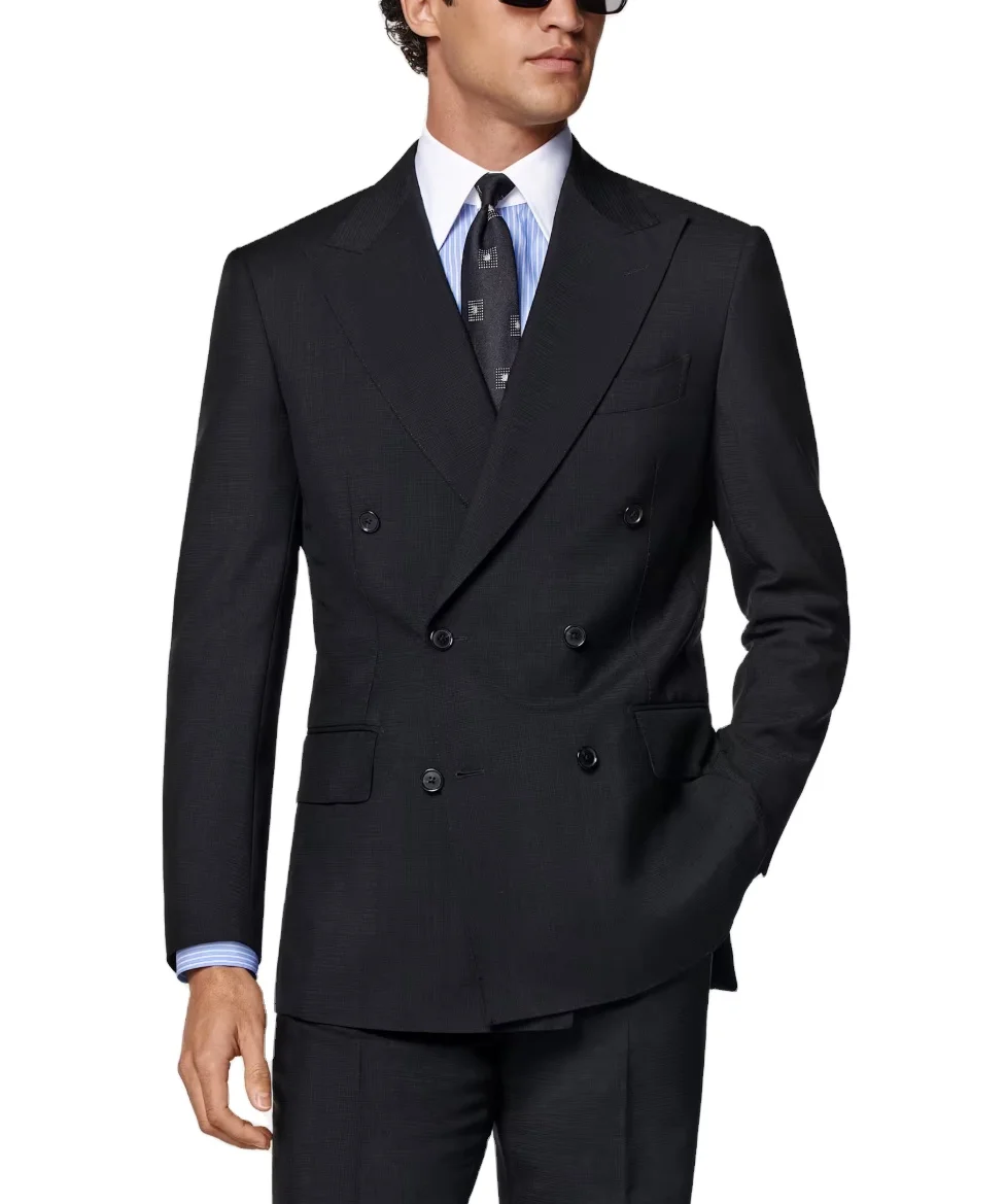 High-end Custom Double-Breasted Double-Rolled Collar Black Super 140 Yarn 100 Wool Plus Size Slim Fit Man Suit