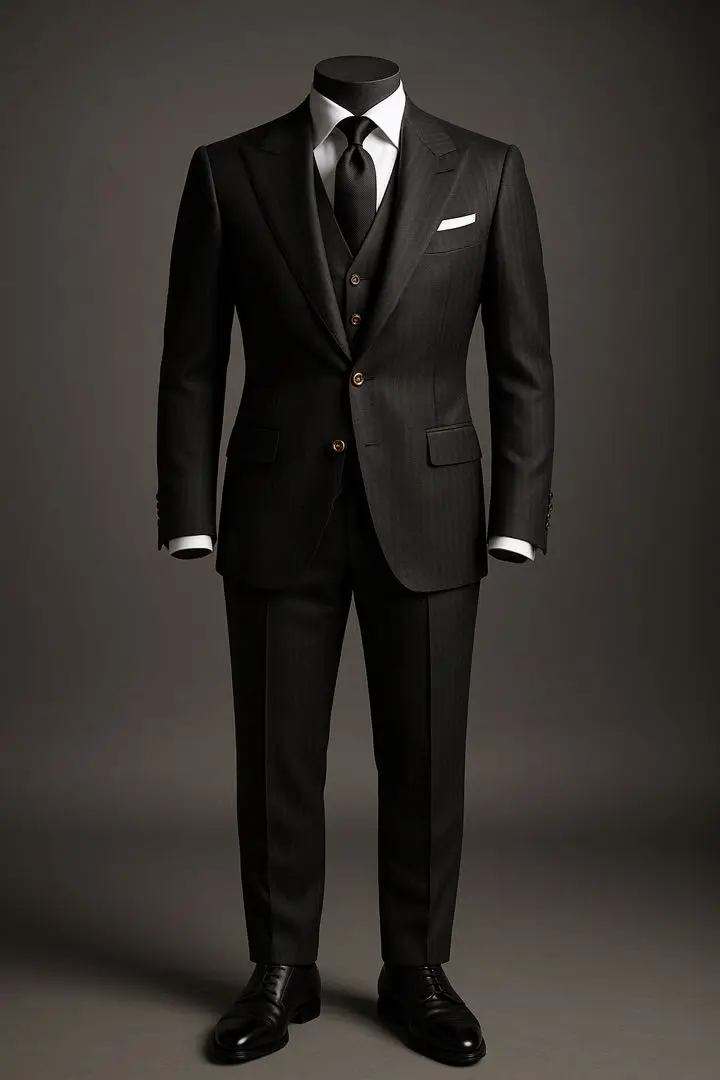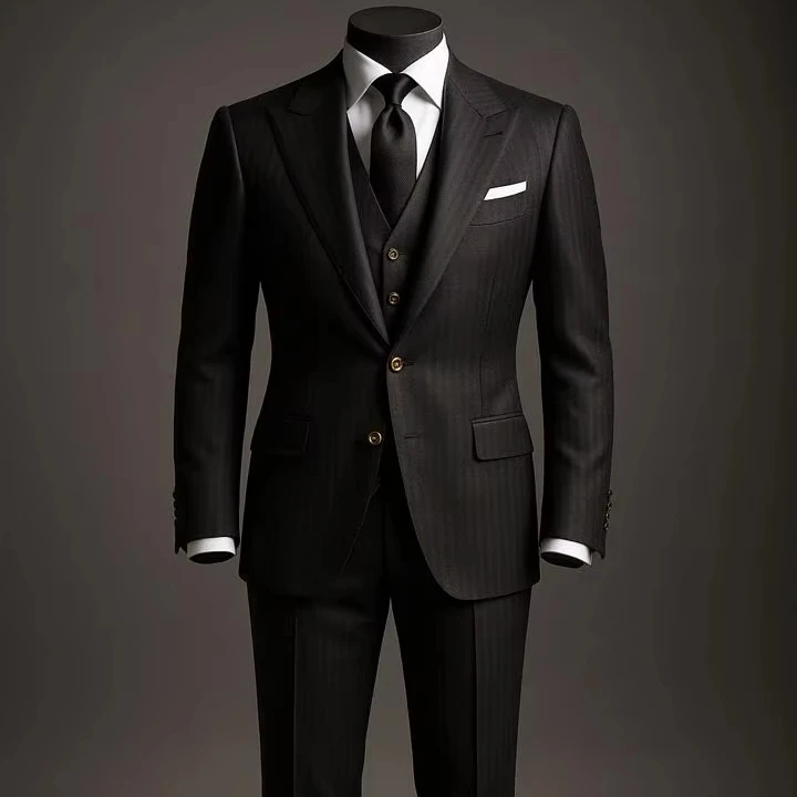 High-end Custom Breasted V-neck Black Banquets and Weddings 100% Wool Plus Size Slim Fit Man Suit Zipper Fly Waterproof