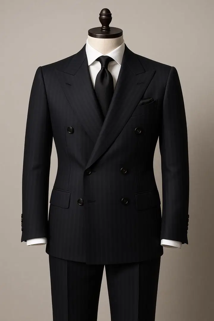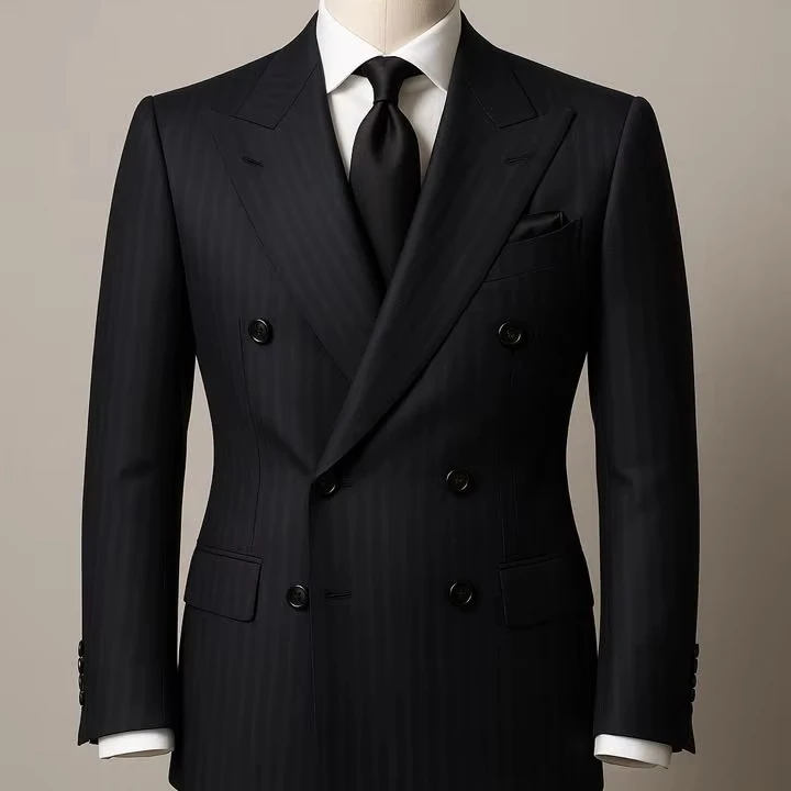 High-end Custom Double-Breasted V-neck Black Banquets and Weddings 100% Wool Plus Size Slim Fit Waterproof Man Suit