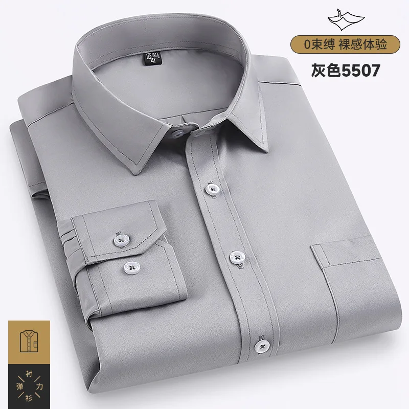 High Quality Men's Casual Long Sleeve Shirt Large Size Quick Dry Twill Fabric Breathable Ice Silk for Spring