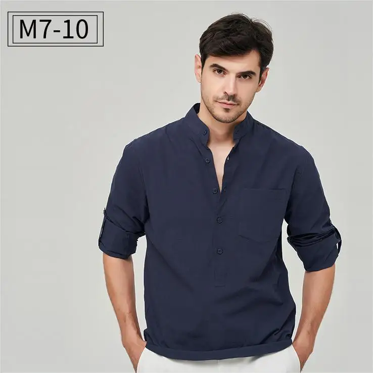 Henry Men's Formal Long-Sleeved T Shirts Anti-Wrinkle Work Polos with High and Turn-Down Cotton Twill Spring Casual Shirts