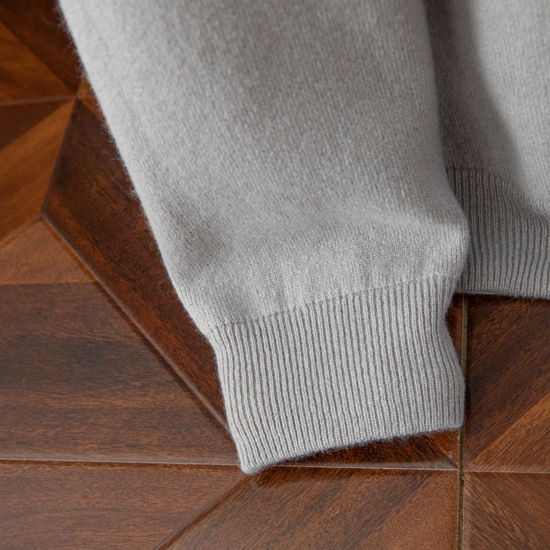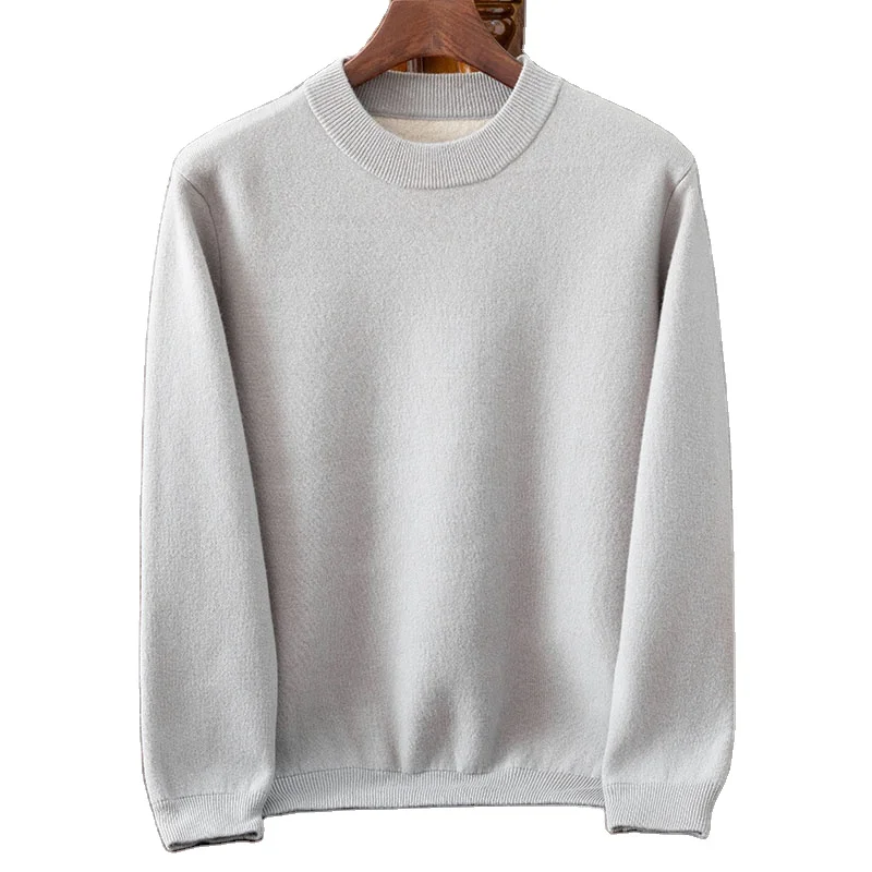 Autumn Winter Men's 100% Cashmere Half-High-Necked Crew Neck Pullover Thick Bottomed Knitted Hoodie Anti-Pilling Quick Dry