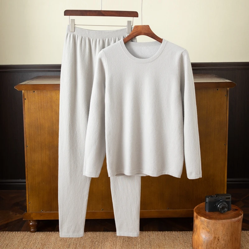 Men's 100% Cashmere Thermal Underwear Padded Elastic Knitting Bottoming Close-Fitting Hoodie Quick Dry Breathable for Winter
