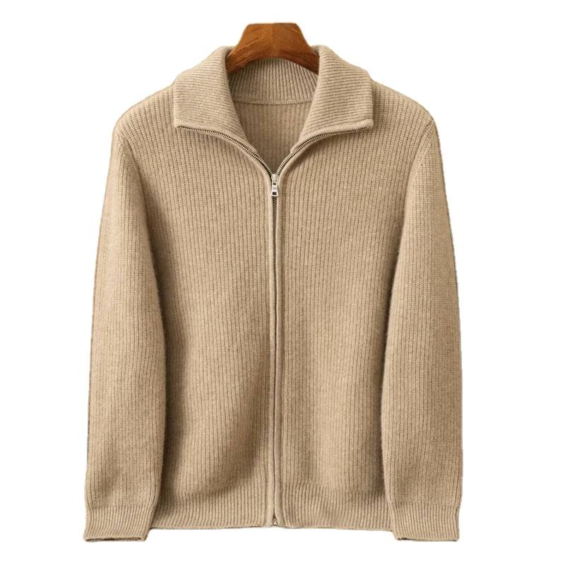 Knitwear Manufacturer Custom Sweater Cardigan 100% Cashmere Winter All-cashmere Jacket with Thick Zipper Is Loose and Casual