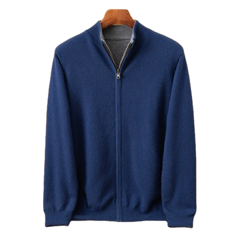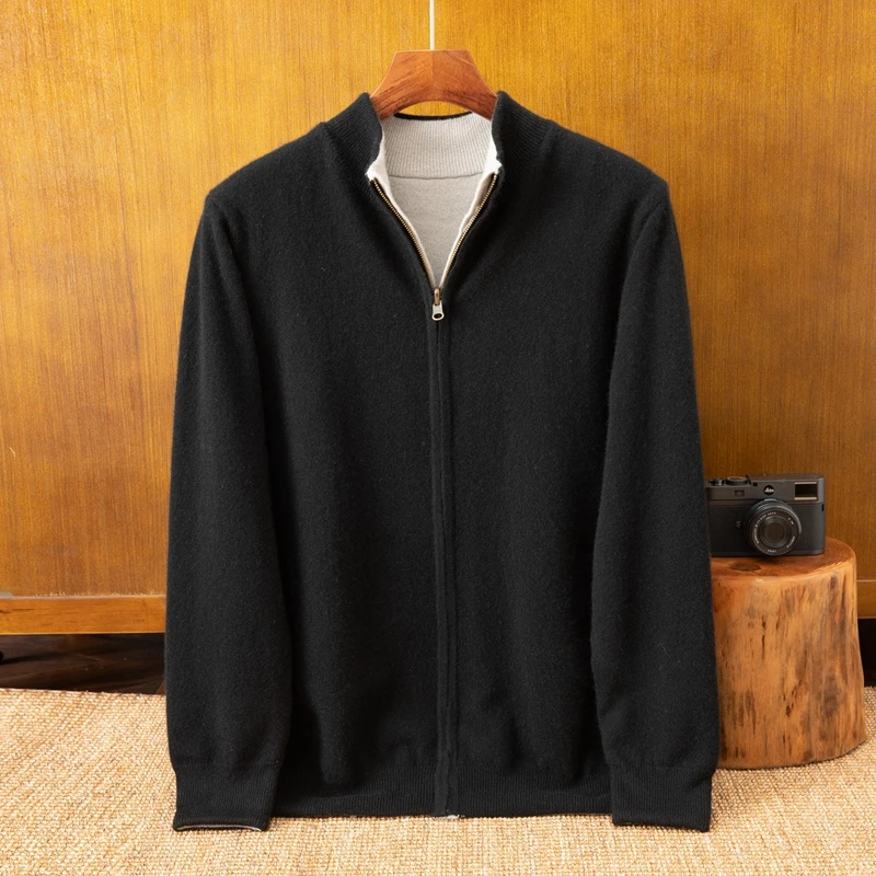 Long Sleeve Light Brown Cashmere Knit Coat Winter Men's Zipper Sweater with Cardigan Sweater Design ODM Supply