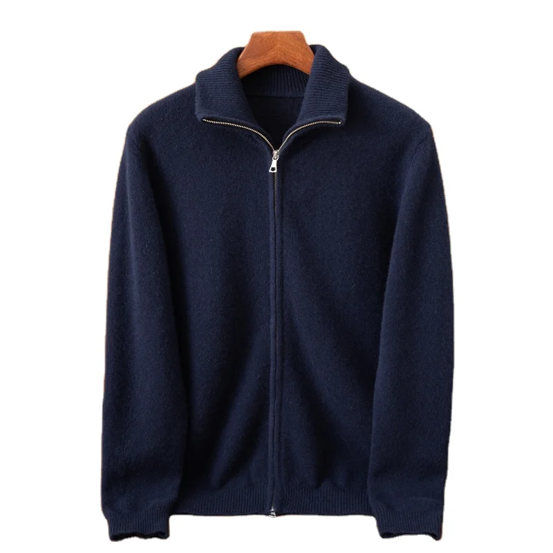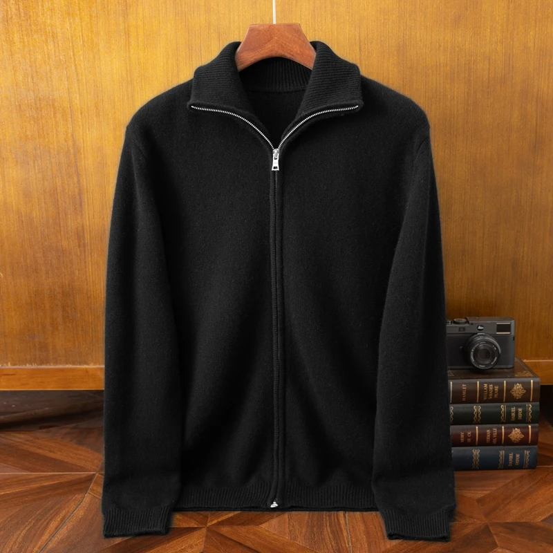 Men's Pure Cashmere Cardigan High Neck Thick Knitted Winter Coat Casual Anti-Wrinkle Breathable Sweater Plain Pattern Zipper