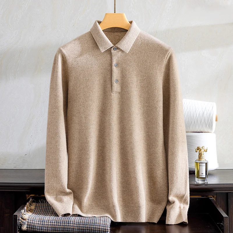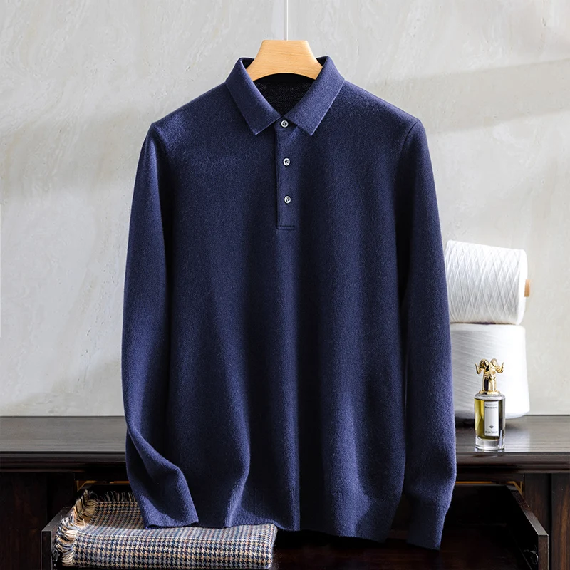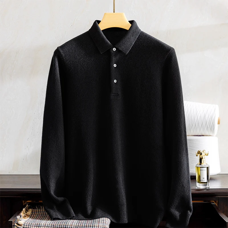 Men's POLO Neck Pure Cashmere Long Sleeve Business Print Pattern Winter Sweater ODM Plus Size Business Cardigan