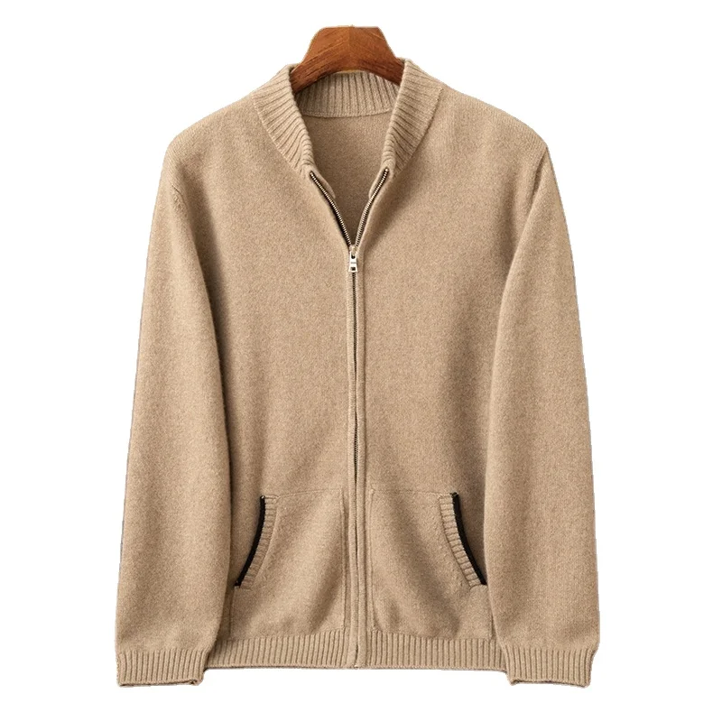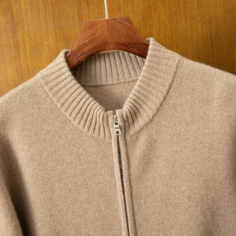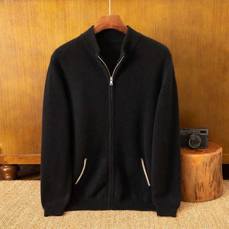 Custom-Made 100% Cashmere Men's Full-Zip Open Cardigan Heavyweight Thickened Air Layer Breathable Business Casual Winter Coat