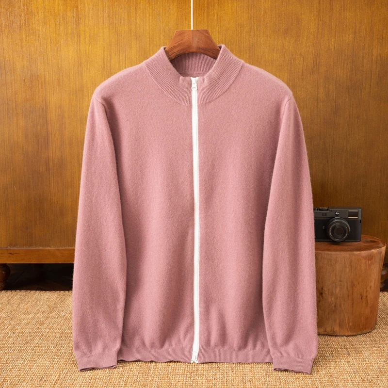 Men's Pure Cashmere Breathable Anti-Pilling Quick Dry Zipper Cardigan Sleeveless Solid Pattern Business Casual Knitted Jacket