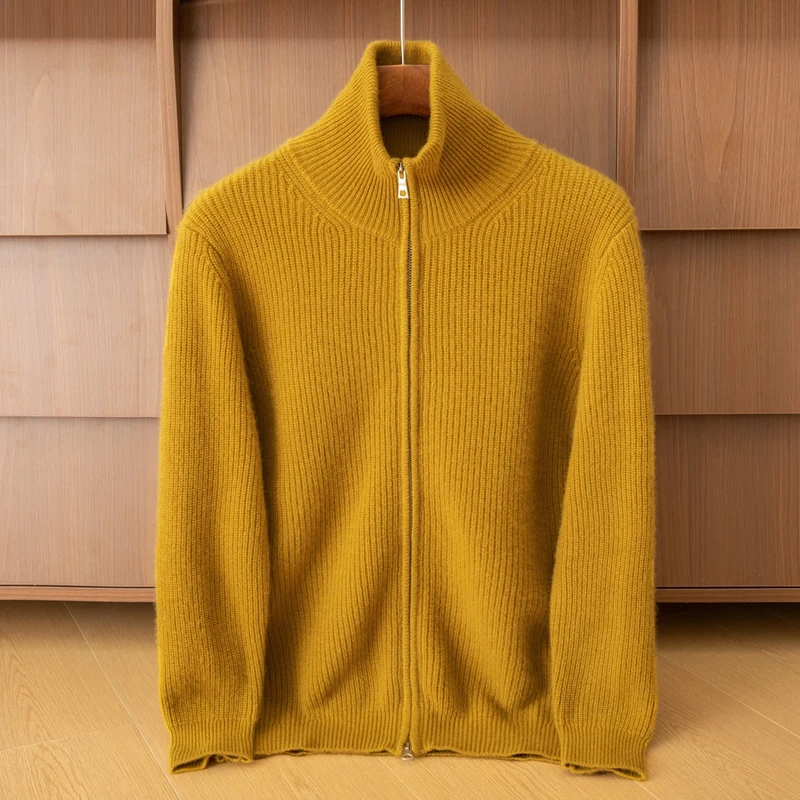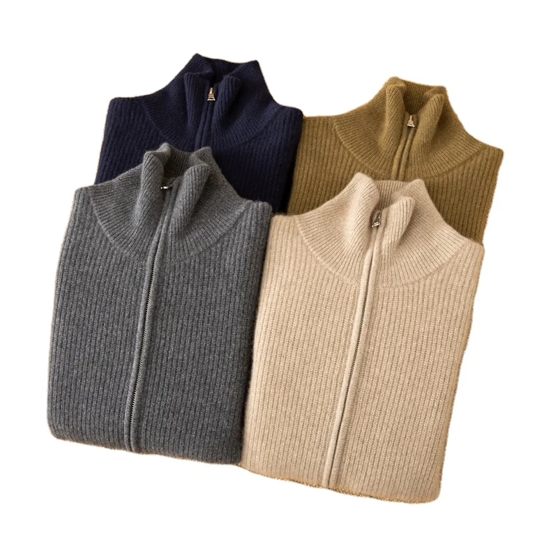 Men's Long Sleeve Zip Cardigan Sweater Custom Logo Designer Winter Collection 3D Pattern with Front Logo Breathable Cashmere