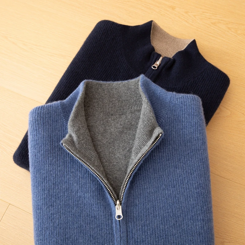 Men's Winter Vest & Sleeveless off Shoulder Solid Breathable Quick Dry Knitted Wool Liner Warm Zipper Cashmere Front Fenglu