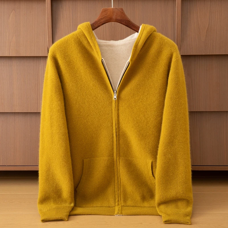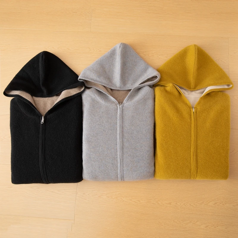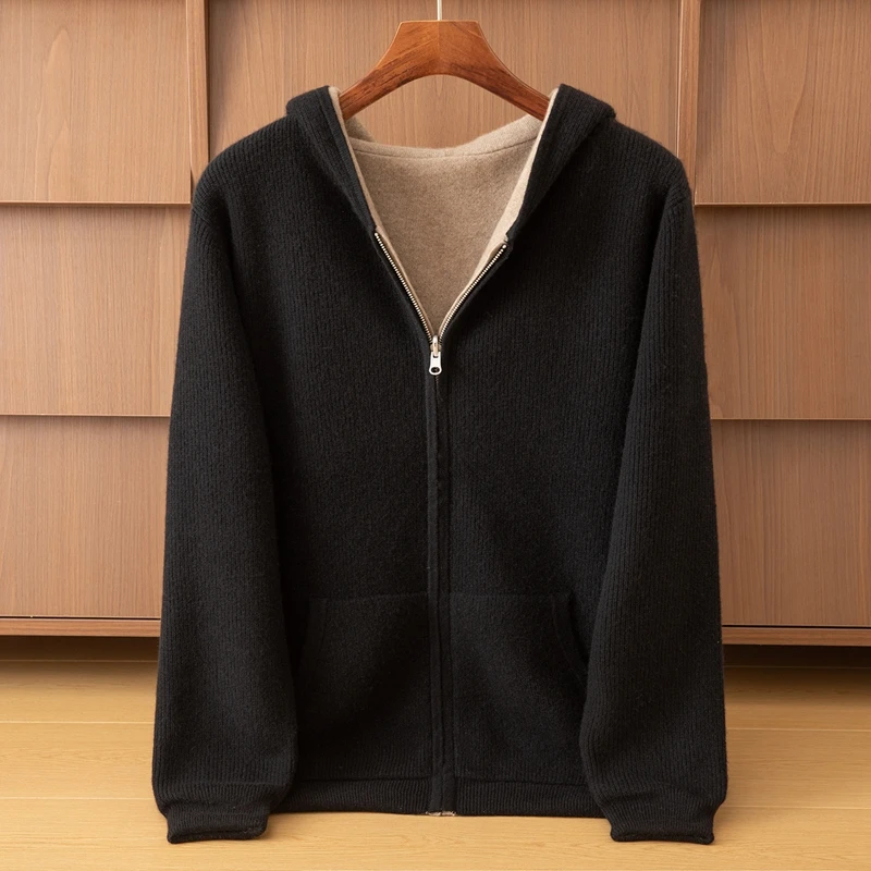 Men's Dual-Sided Padded Cashmere Knitted Coat Winter Autumn Striped Pattern Hoodie with Zipper Closure ODM Supply