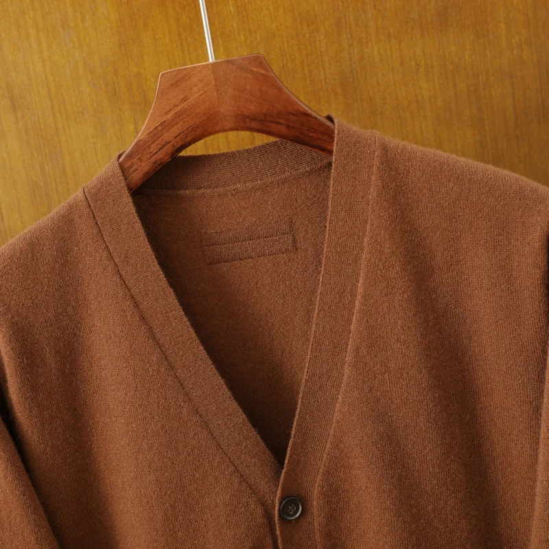 2026 Custom Men's Mandarin Collar Cashmere Sweater Business Cardigan Zipper Closure Knitted Anti-Pilling Breathable Spring
