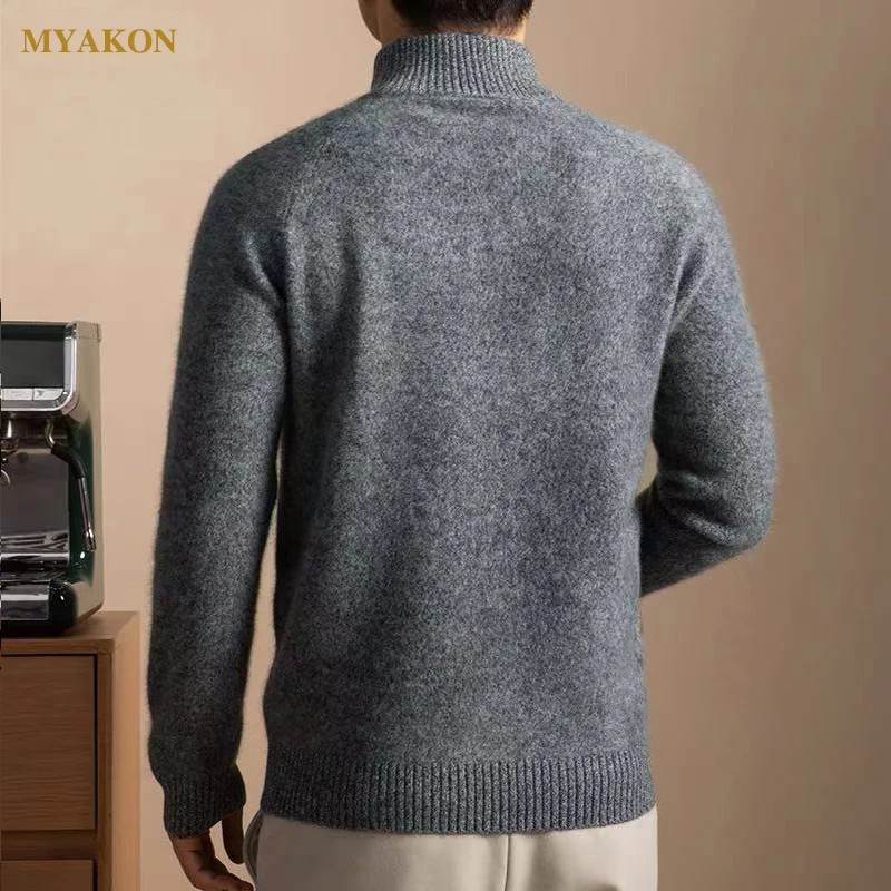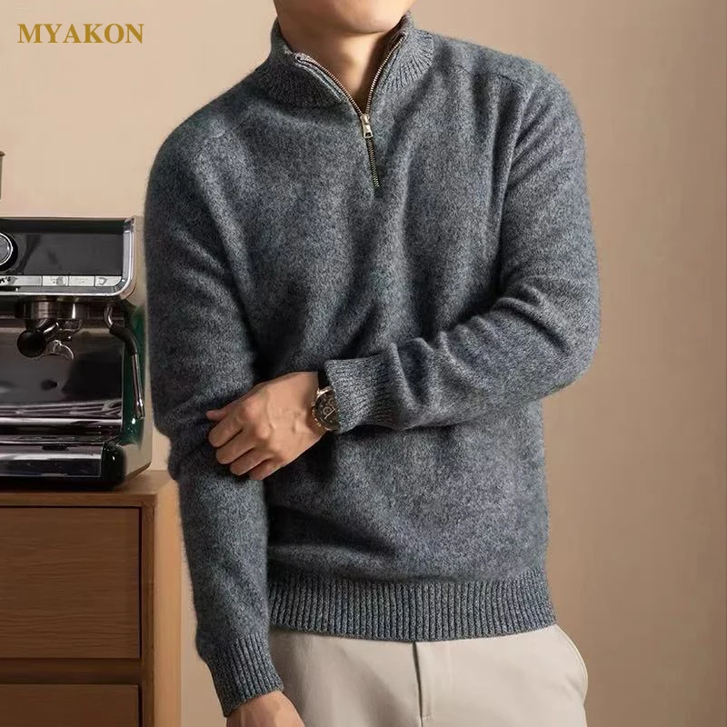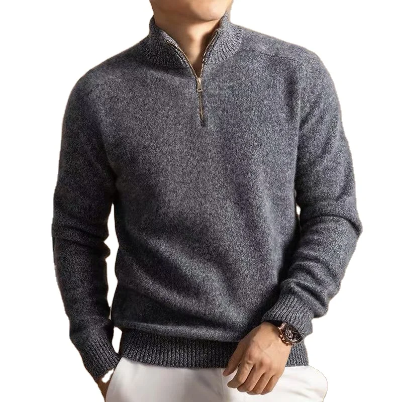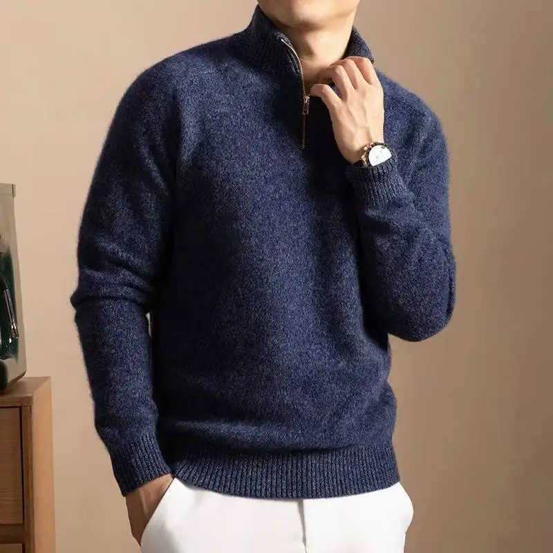 Men's Thick Yarn Cashmere Series 3D Anti-Wrinkle Breathable Winter Front Logo Custom Color Half Zipper Sweater