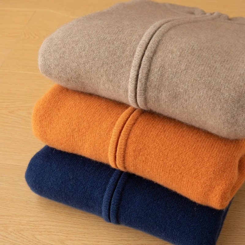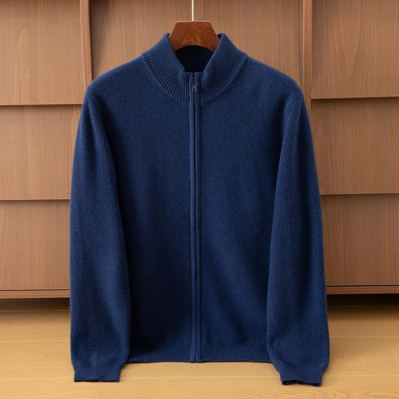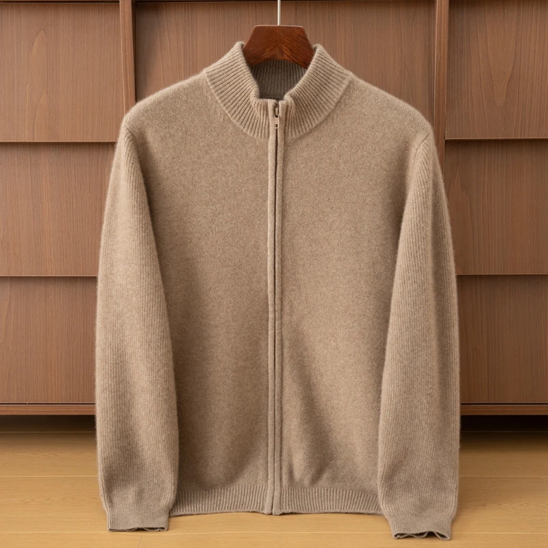 Men's Winter Coat Cardigan Style Thick with Semi-High Collar Pure Cashmere Anti-Wrinkle Quick Dry Breathable Zipper Front Logo