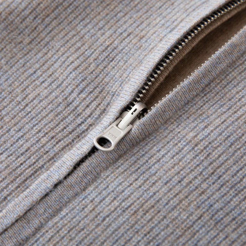 Men's Dual-Sided Padded Cashmere Knitted Coat Winter Autumn Striped Pattern Hoodie with Zipper Closure ODM Supply
