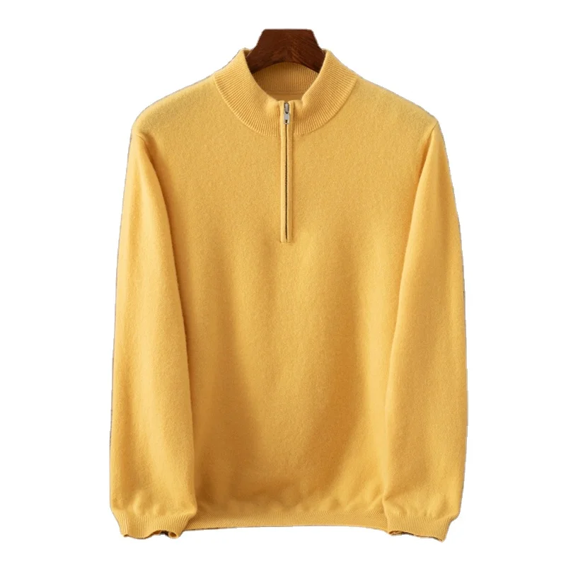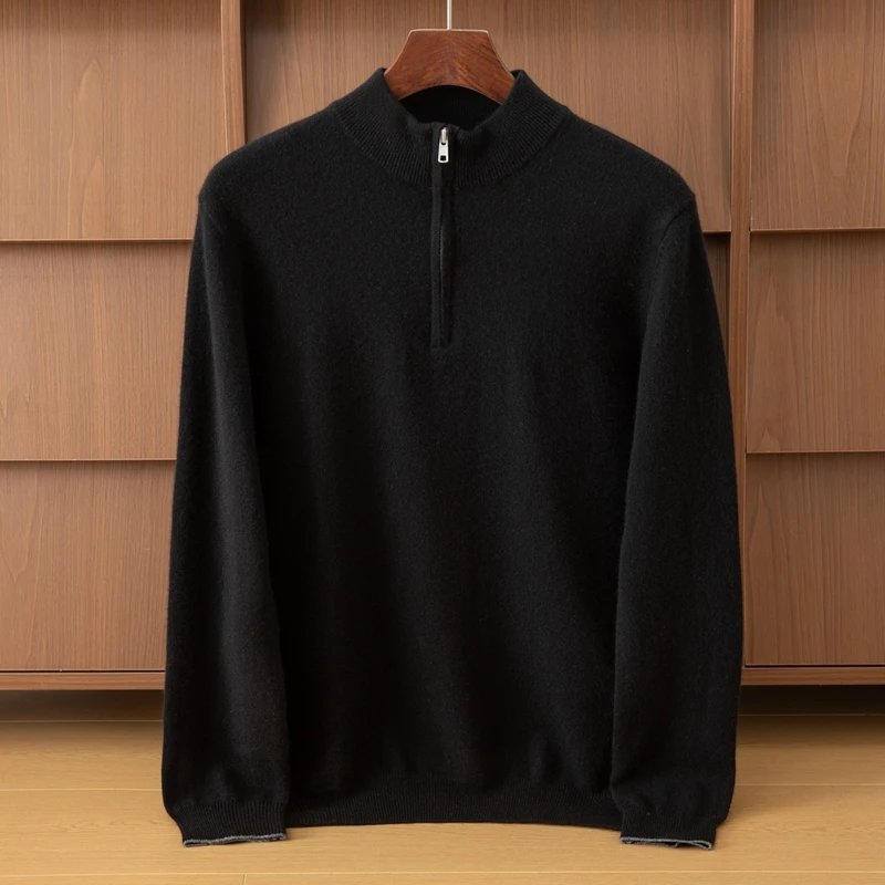 Men's New Winter Half-Zipper Cashmere Cardigan Breathable Front Logo Warm Casual Long Sleeves Machine Weaving