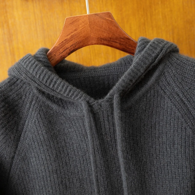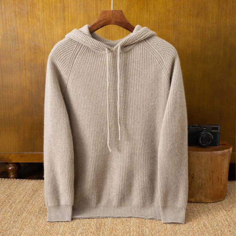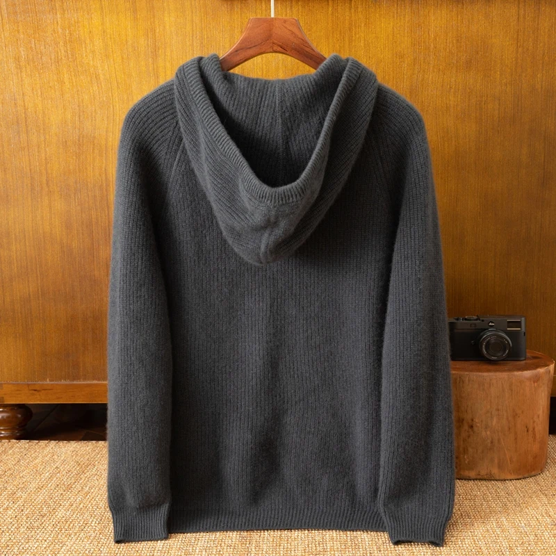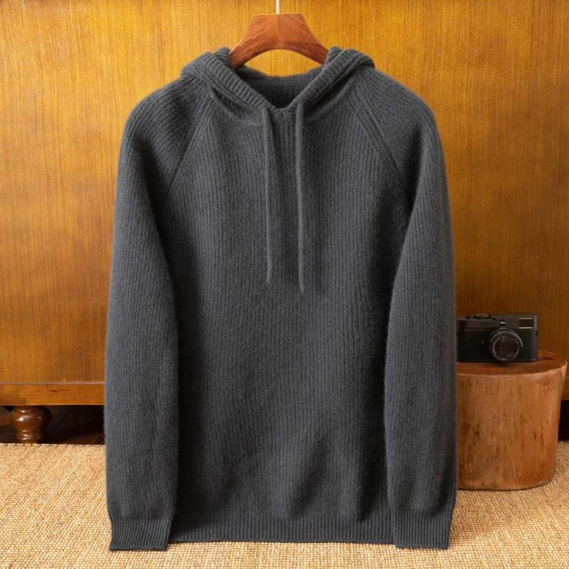 Custom Logo Men's Knitted Pullover Wool Cashmere Hoodie Fashionable Crew Neck Winter Sweater
