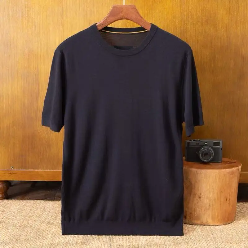 100% Wool Men's Casual Short Sleeve Round Neck Summer Cardigan Anti-Pilling Breathable Quick Dry Thin Wool Luxury OEM Supply
