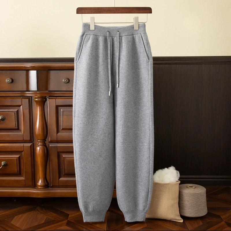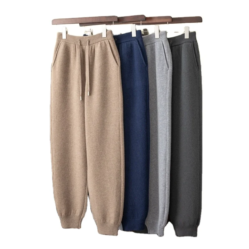 Men's Cashmere Knitted Trousers Wear-resistant Thickened Warm Custom Sweatpants.