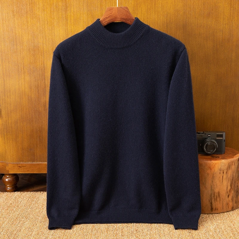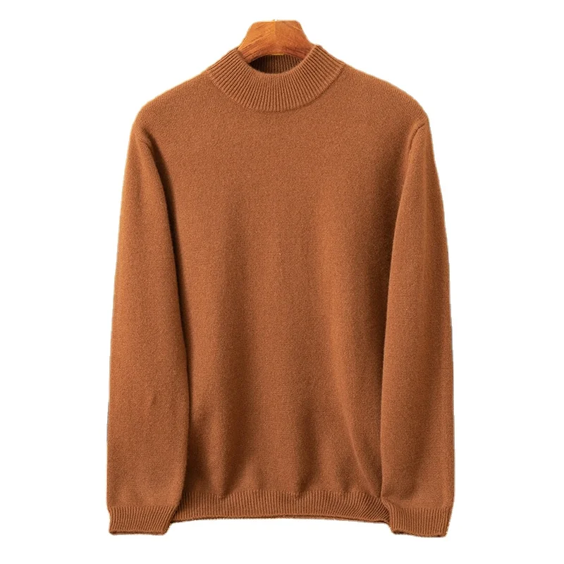Autumn Winter Men's 100% Cashmere Half-High-Necked Turtle Neck Pullover Thick Bottomed Knitted Cardigan Wholesale
