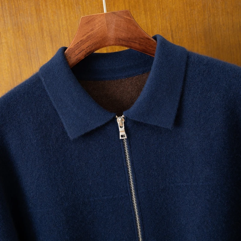 Autumn Winter Men's 100% Cashmere Padded Cardigan with Zipper Breathable Knitted Shirt Collar Sweater Jacket