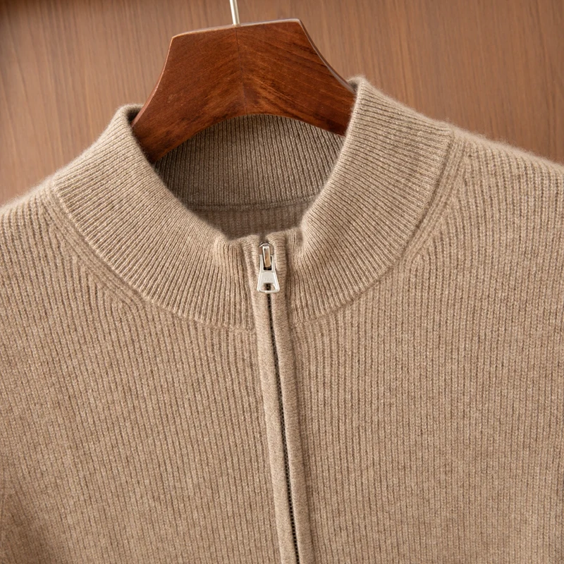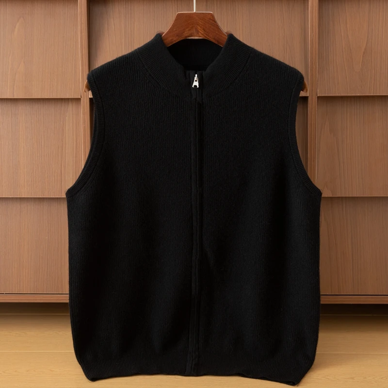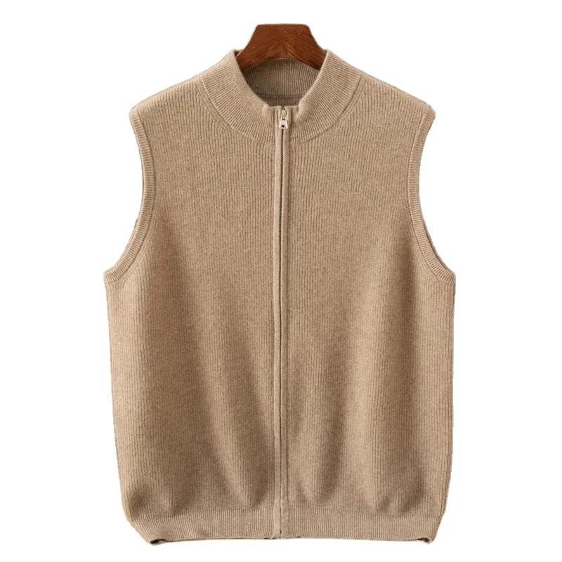Autumn Men's Cardigan Vest with Zipper Cashmere Knitted and Pattern Decorated ODM Supply for Layering
