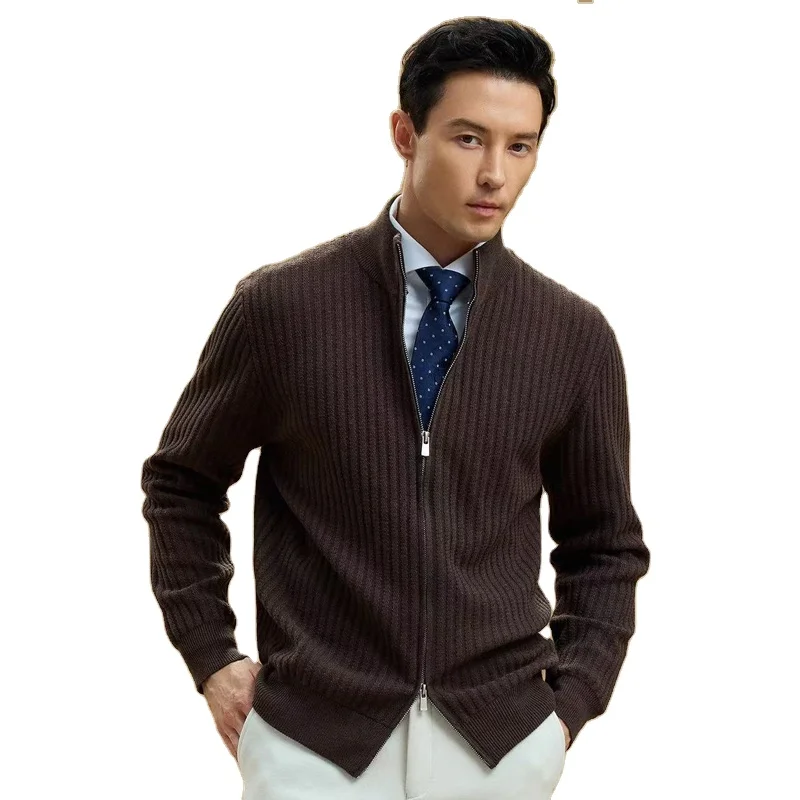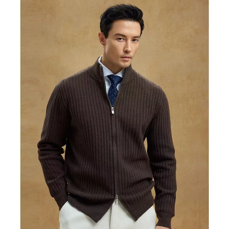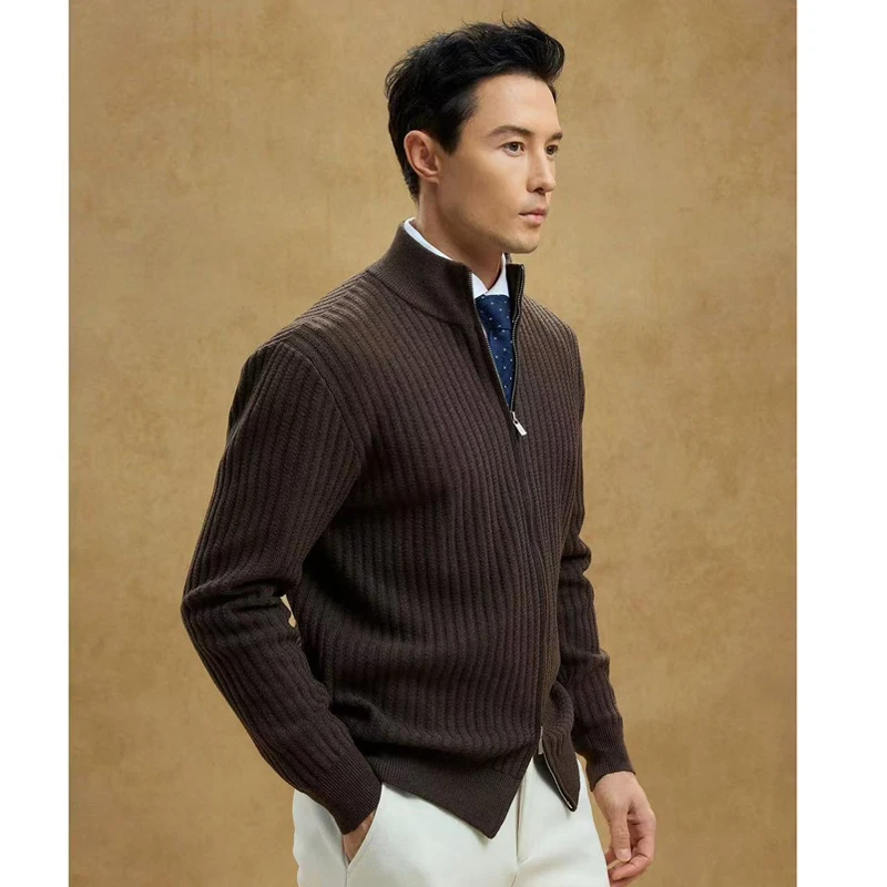 MYAKON Men's 100% Cashmere 480g Full Sleeve Zipper Cardigan Jacket Padded Winter Knitted with Pocket Anti-Wrinkle and Breathable