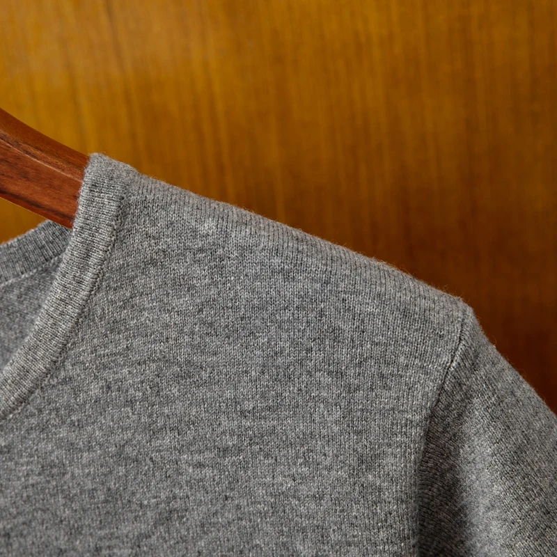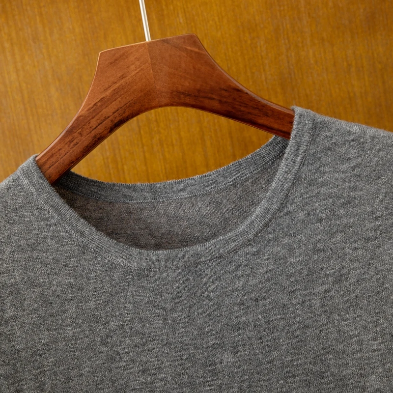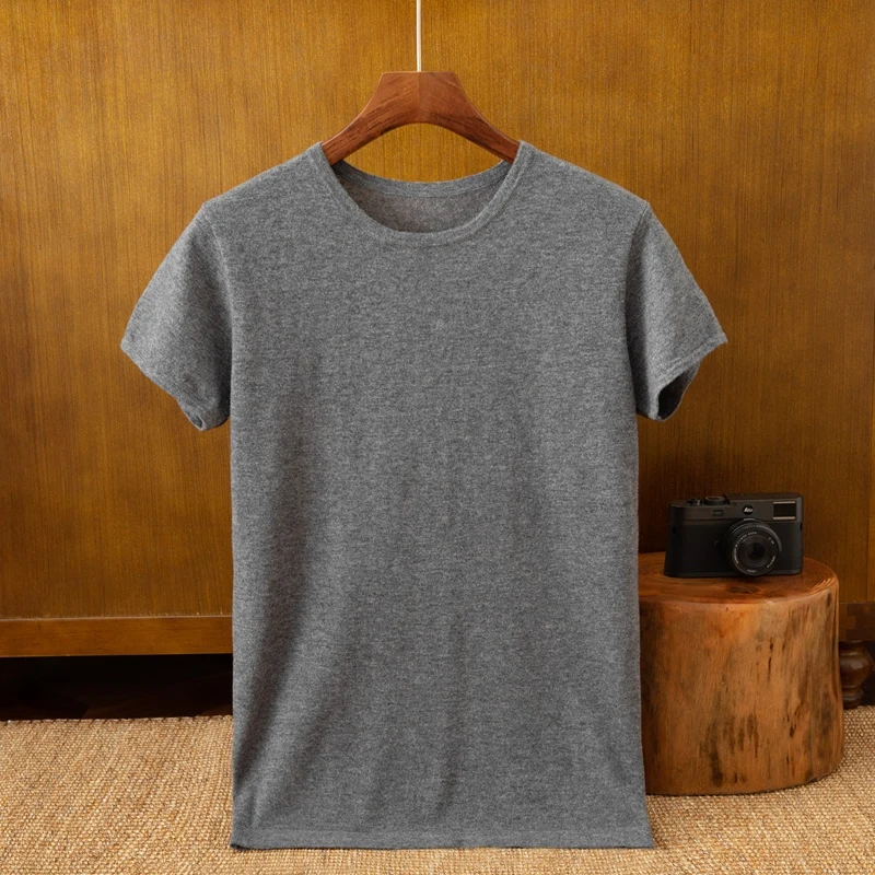 Men's Casual Fitness T-Shirt Solid Woolen Semi-Worsted Low Round Neck Short-Sleeved Knitted Bottoming Shirt with Simple Design